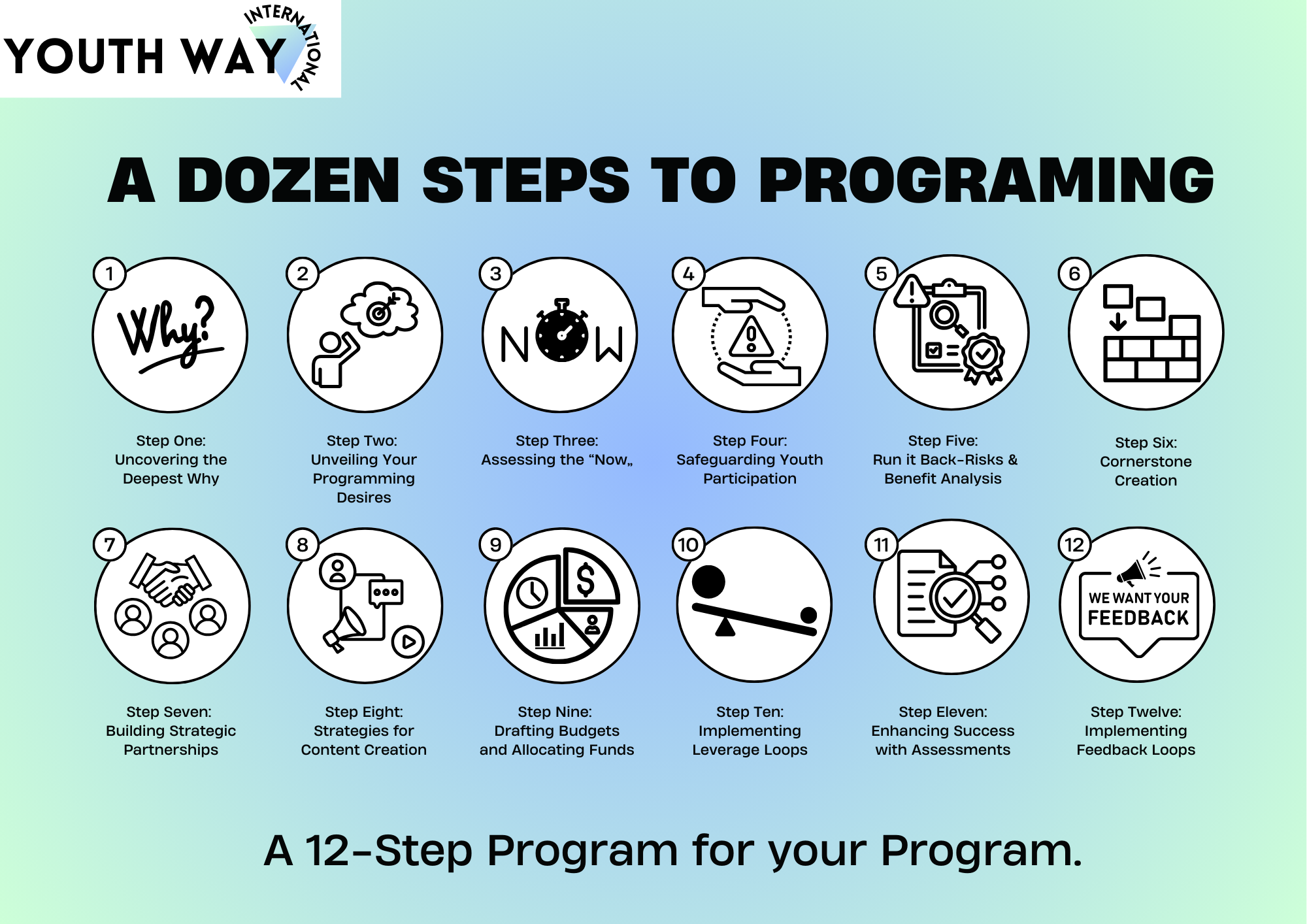 Our approach focuses on meeting young people where they are, both online and offline, to effectively connect with and inspire them. In step eight discover the psychology behind social media engagement and learn how to craft compelling content that resonates with your audience. Explore proven marketing strategies tailored to different social media platforms, including Instagram, TikTok, and LinkedIn. We'll guide you through the process of building a strong brand presence, developing program-specific content, and implementing a marketing funnel to drive engagement and participation. With our expertise and resources, you'll be equipped to make a meaningful impact in your community and with digital content creation.